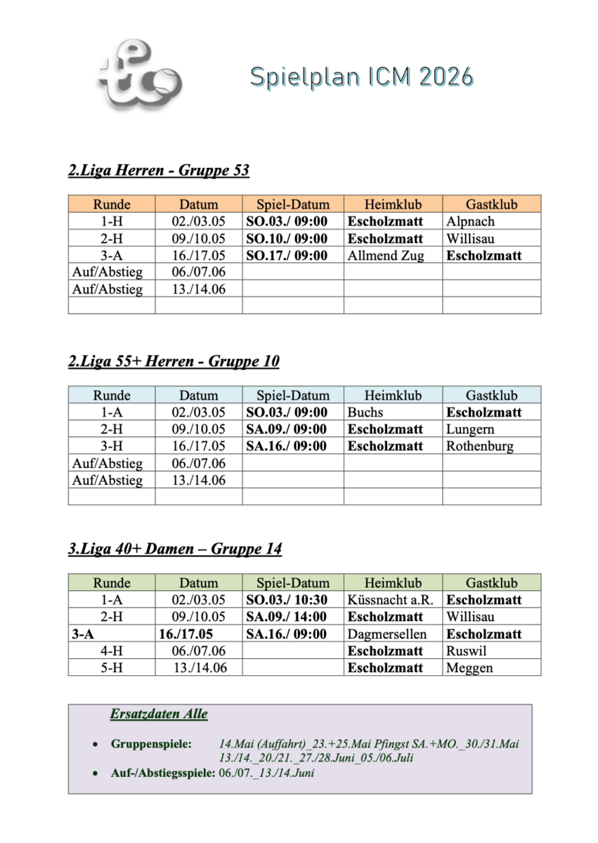 Terminankündigung Die Generalversammlung des TC Escholzmatt findet am Freitag, 13.